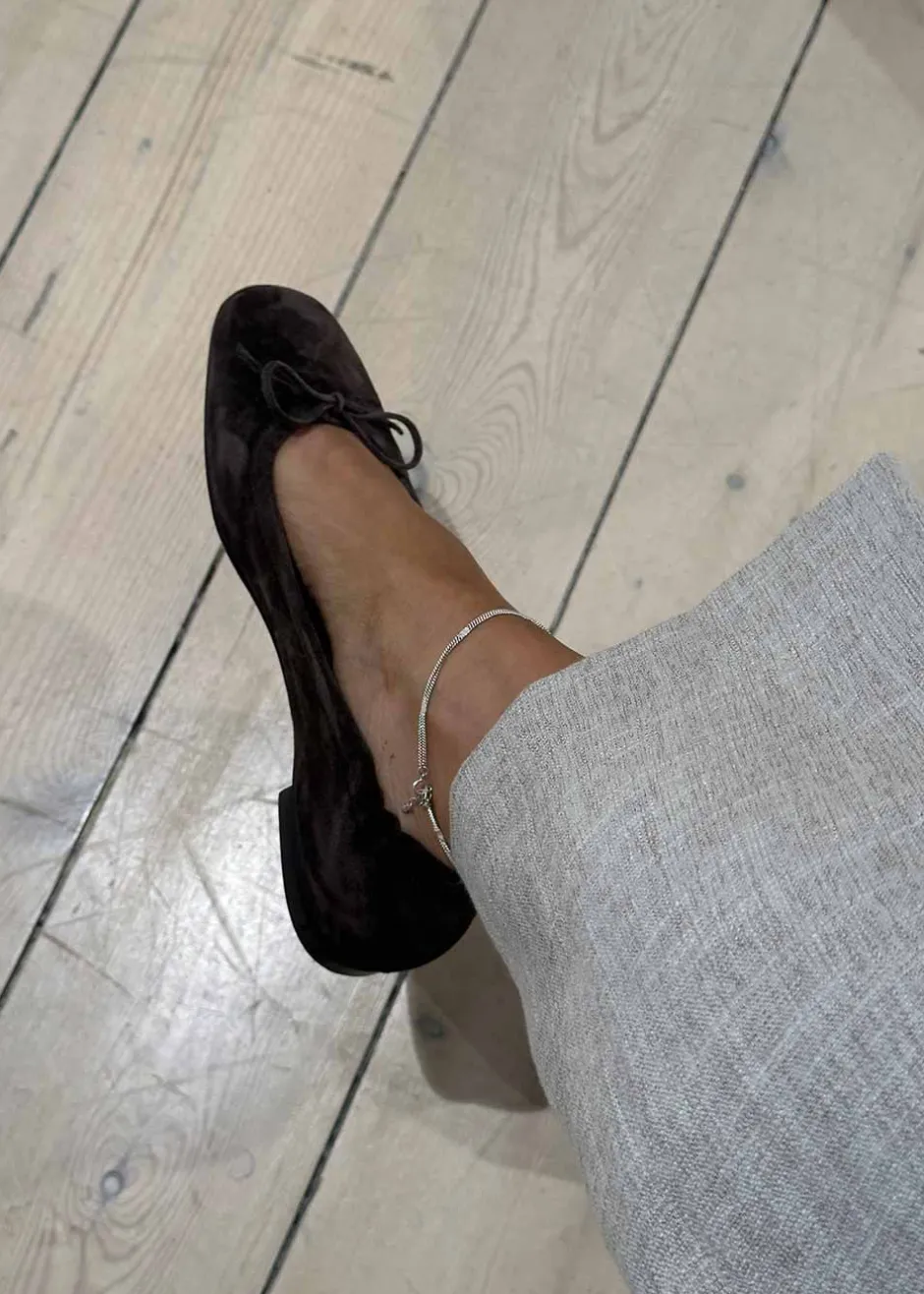 - Håndlavet ballerina i cognacfarvet ruskind