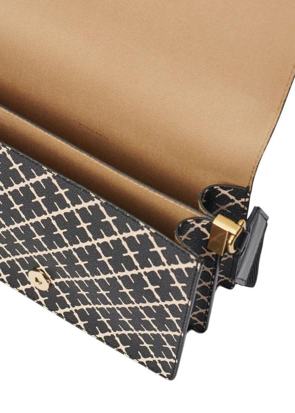 Smuk og praktisk crossbody-taske fremstillet i et slidstærkt materiale og dekoreret med det karakteristiske motiv. Tasken har flaplukning med magnet og en justérbar aftagelig rem, så den altid passer præcis til dig. Helt perfekt til den travle hverdag. Tasken har to indvendige rum.