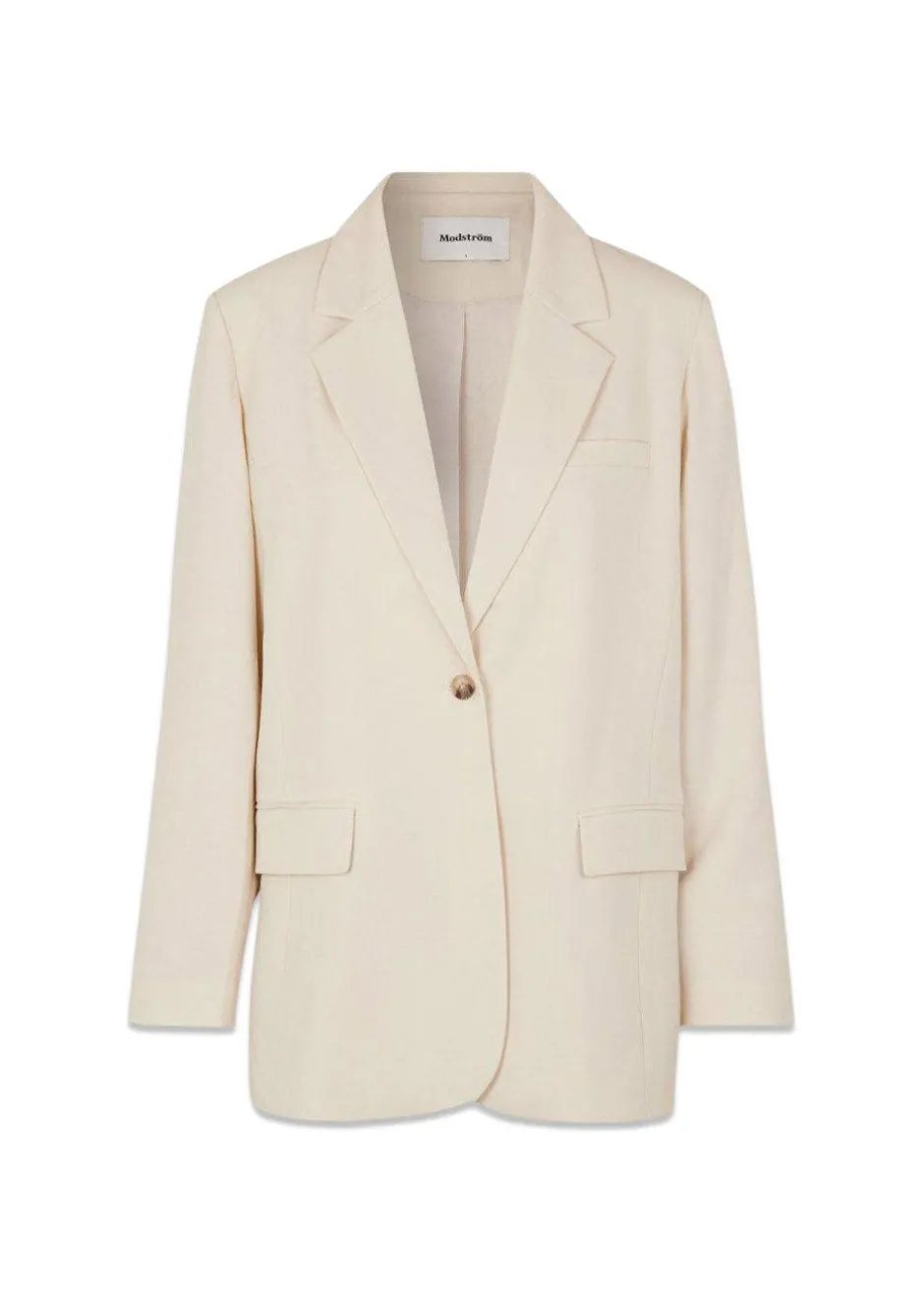 AnkerMD blazer i Summer Sand er lavet på Modströms bestseller ‘Gale’, men i en lettere kvalitet. Der findes flere forskellige muligheder for at anvende denne som en del af et suit. Der findes to forskellige slags matchende bukser og et par shorts. Søg på AnkerMD pants, AnkerMD pocket pants eller AnkerMD shorts for at finde den underdel du bedst kan lide.