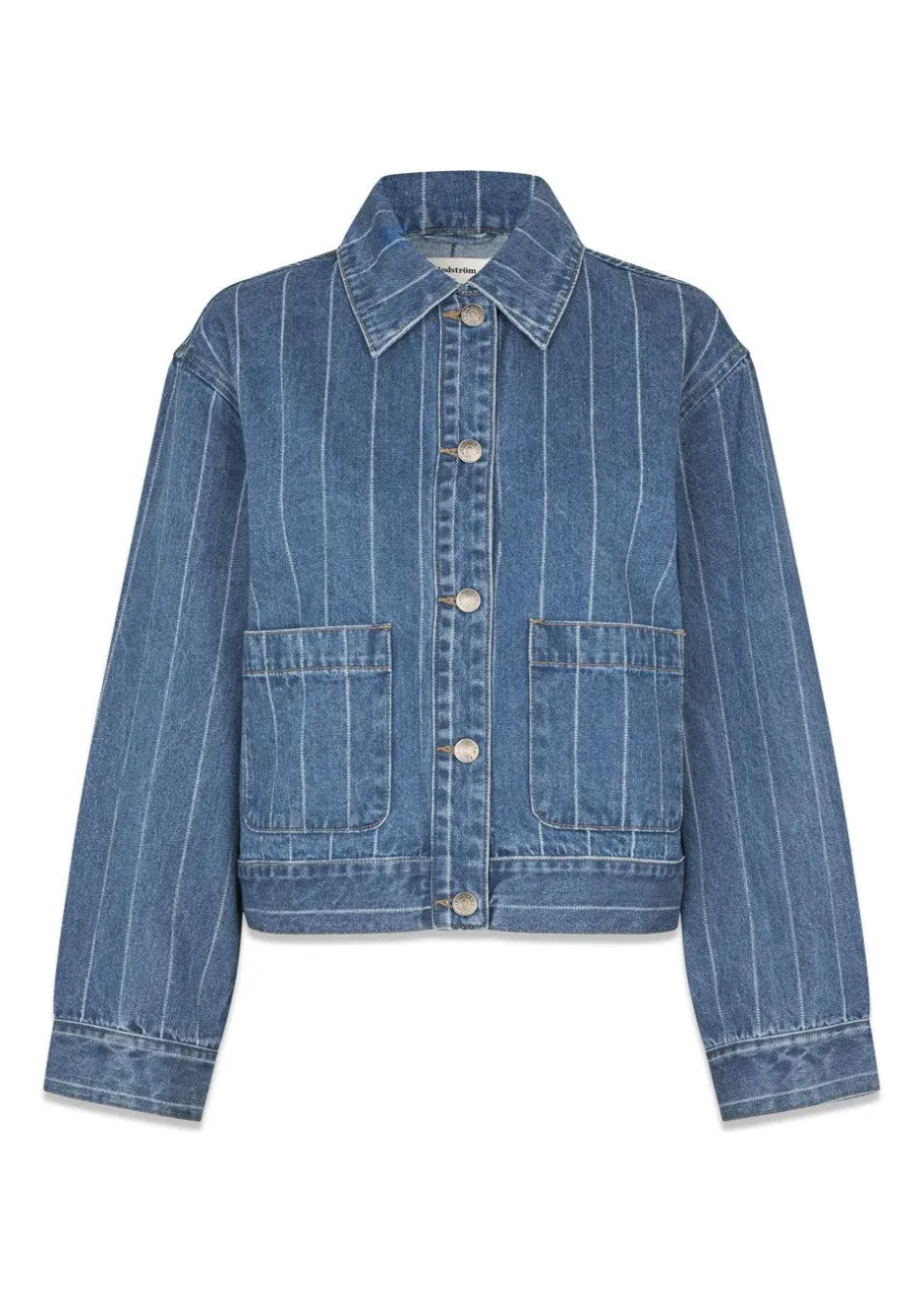 - Denim jakke med striber