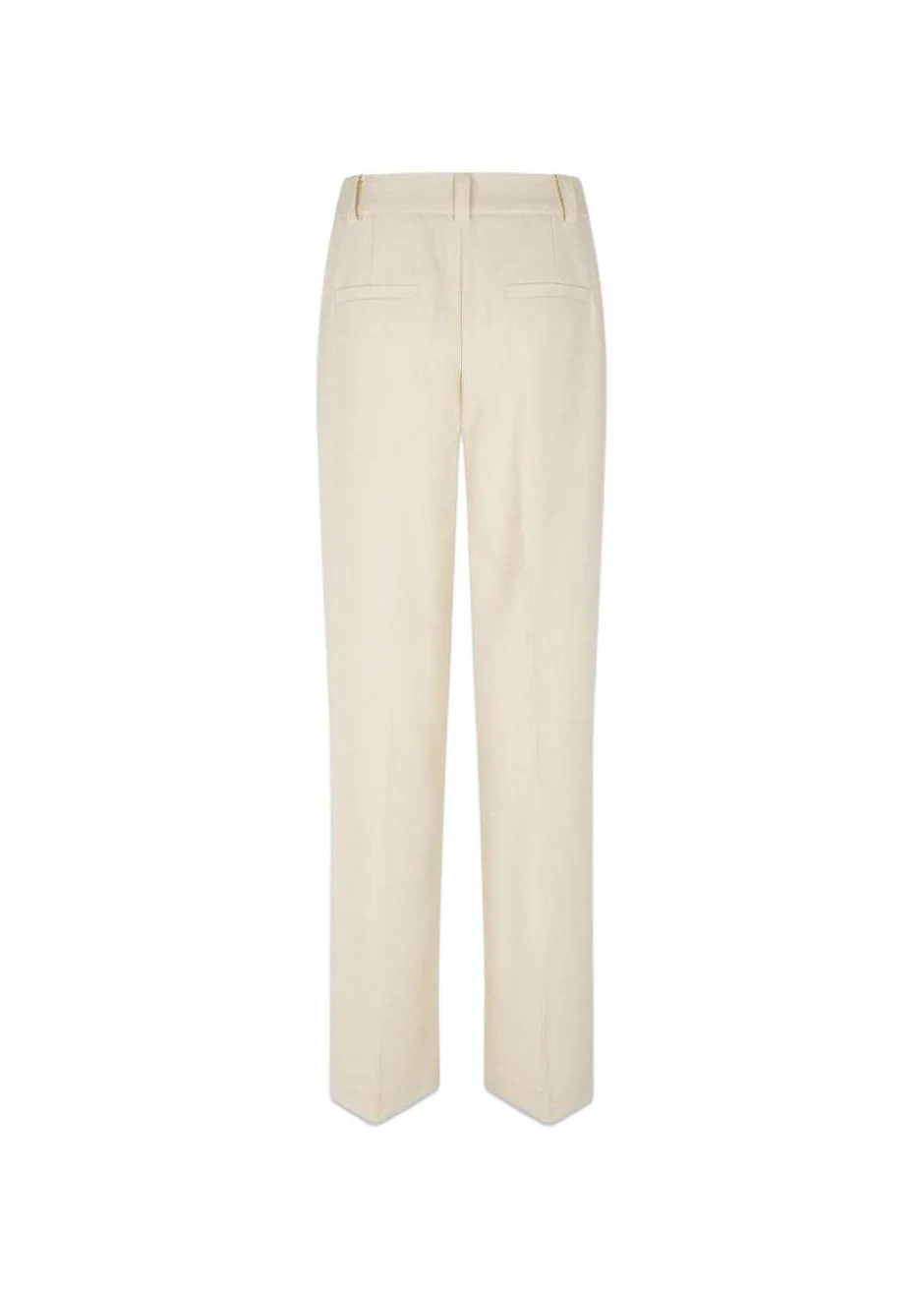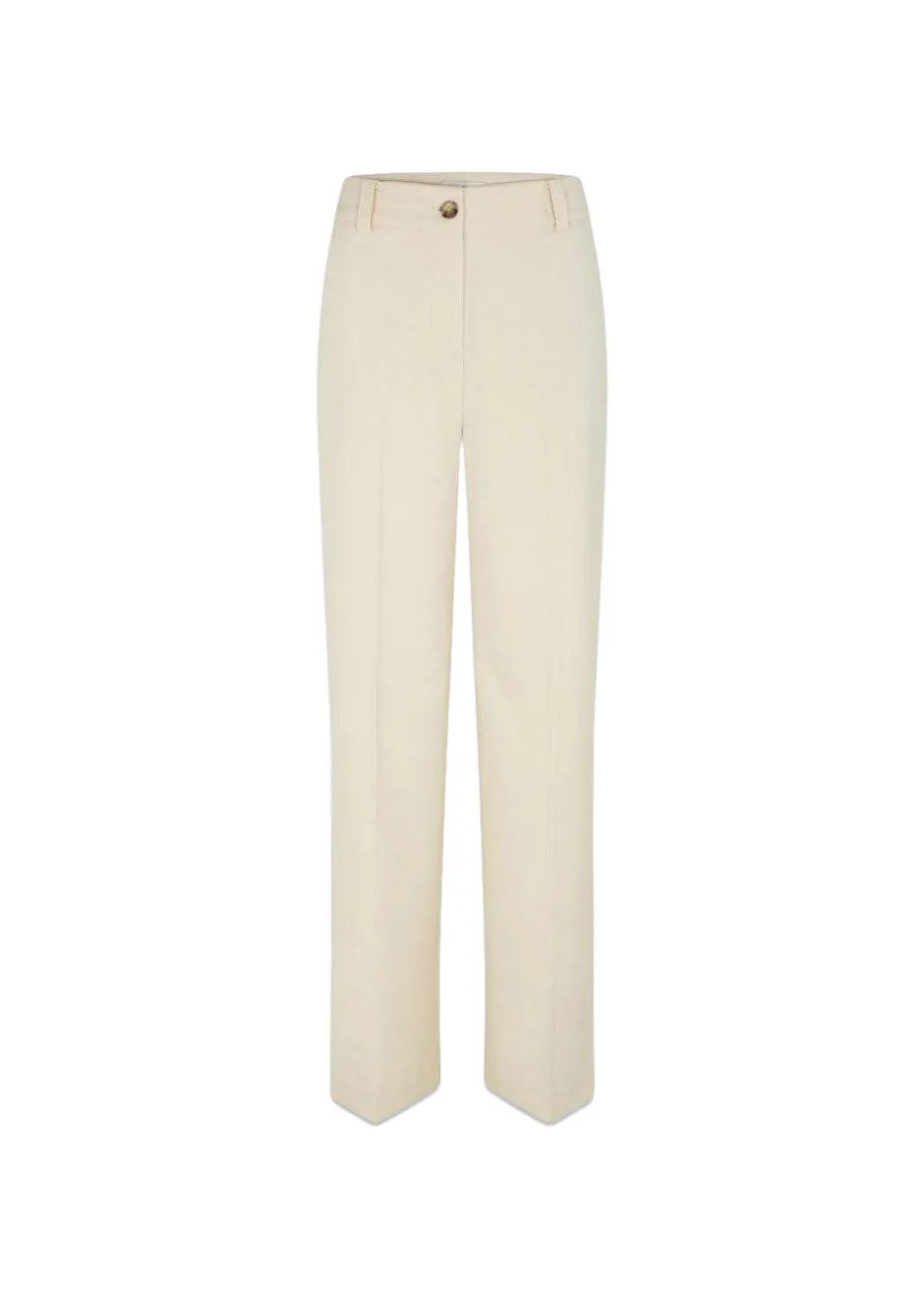 AnkerMD pants har brede ben og mellemhøj talje i en let kvalitet. Bukserne har pressefolder og lukkes med lynlås og knap.