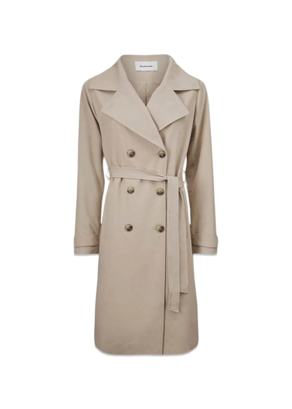 Denne skønne jakke har et klassisk udtryk, bred krave, bælte i livet og knaplukning. Hiro Jacket er den perfekte overgangsjakke.