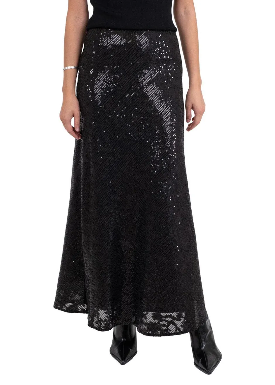Vicky Sequins Skirt en en lang nederdel med elastik indvendig i taljen. Nederdelen falder flot og har palietter all over, hvilket giver et super cool look.