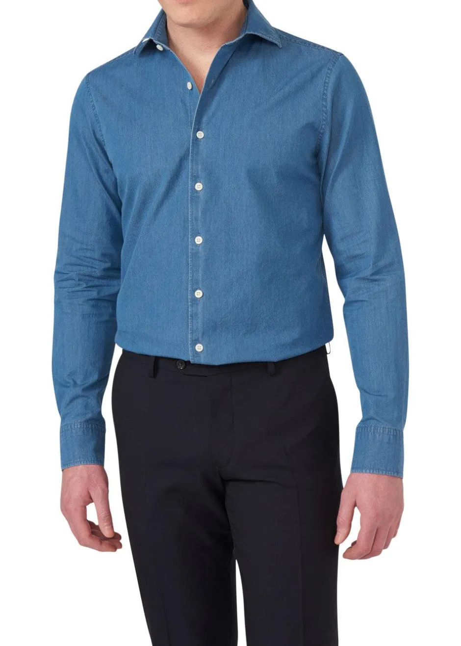Oscar Jacobson Skjorter>Slim Fit Cut Away Denim Shirt