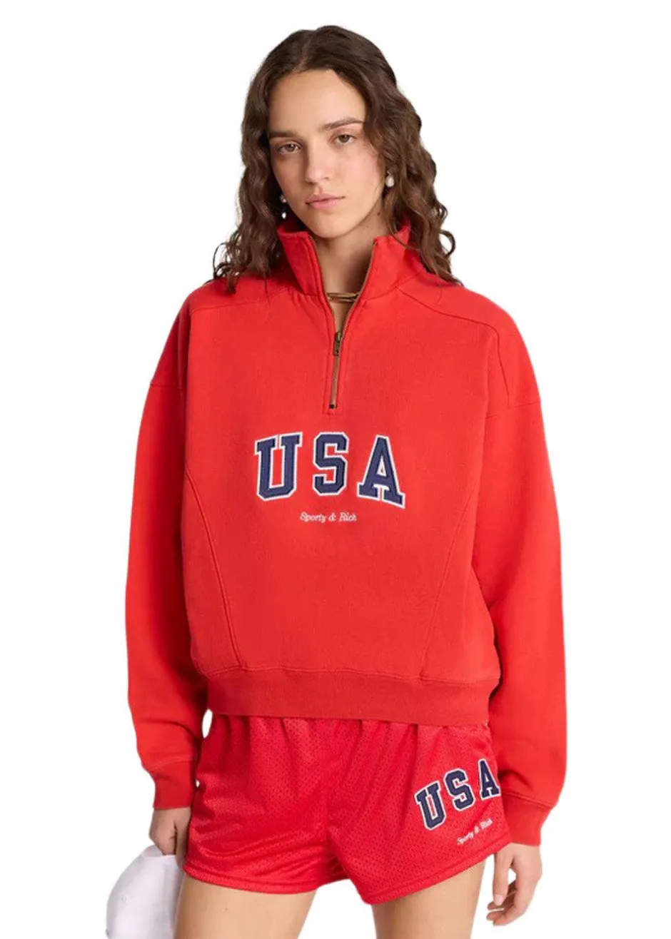Sporty & Rich Sweatshirts>USA Quarter Zip