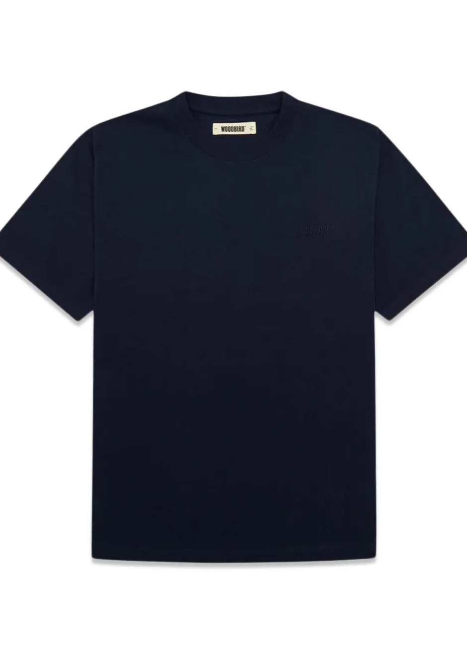 Baine Base Tee i navy har rund hals, korte ærmer og logo broderi foran. En t-shirt i boxy fit.